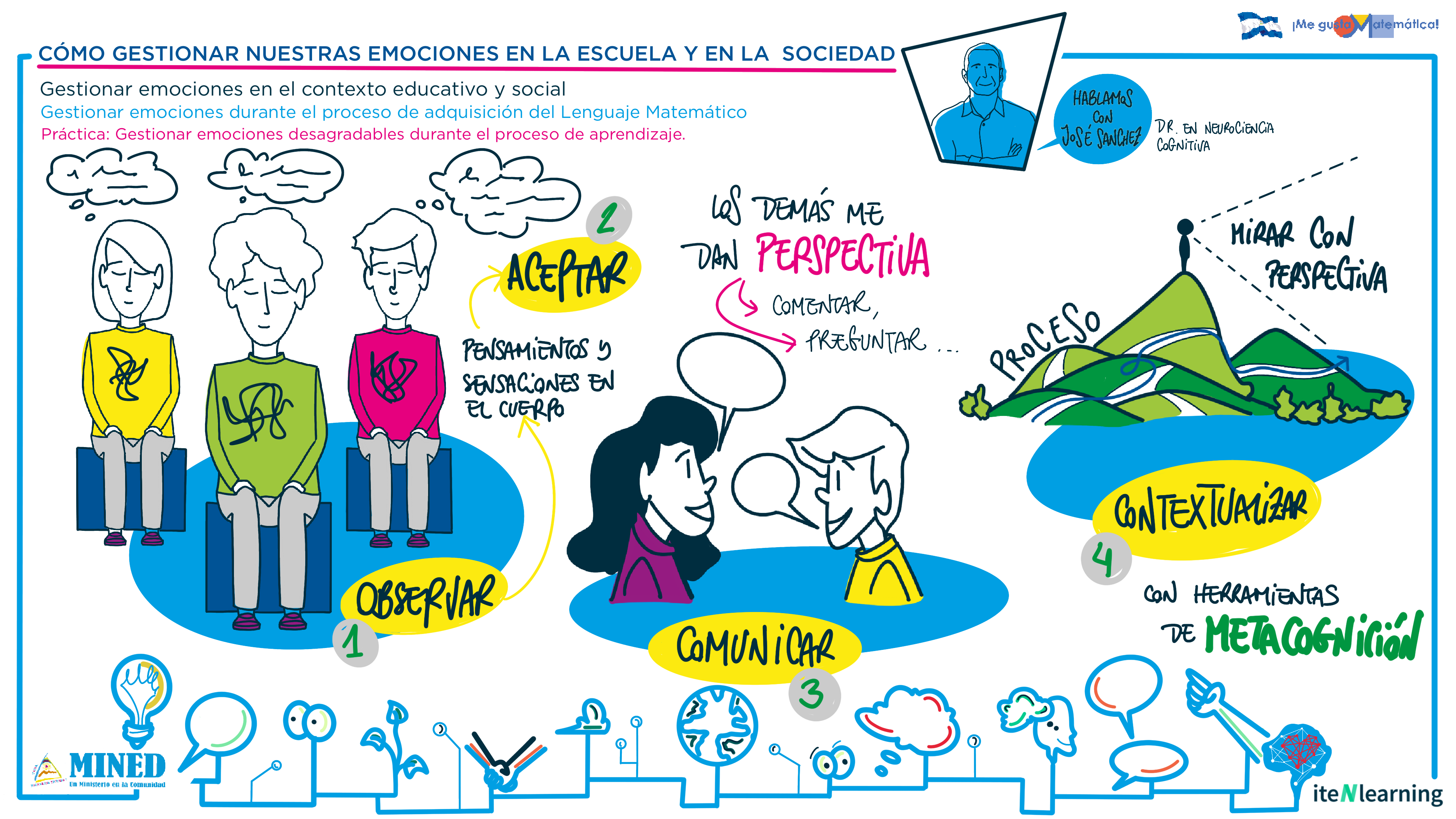 En esta práctica el Dr. José Sánchez nos explica los pasos que tenemos que seguir y aplicar para ser capaces de gestionar mejor las emociones desagradables que podemos sentir cuando estemos en un proceso de aprendizaje. Por ejemplo, mientras estemos trabajando con ¡Me Gusta Matemática! en el proceso de construir nuestro Lenguaje Matemático.